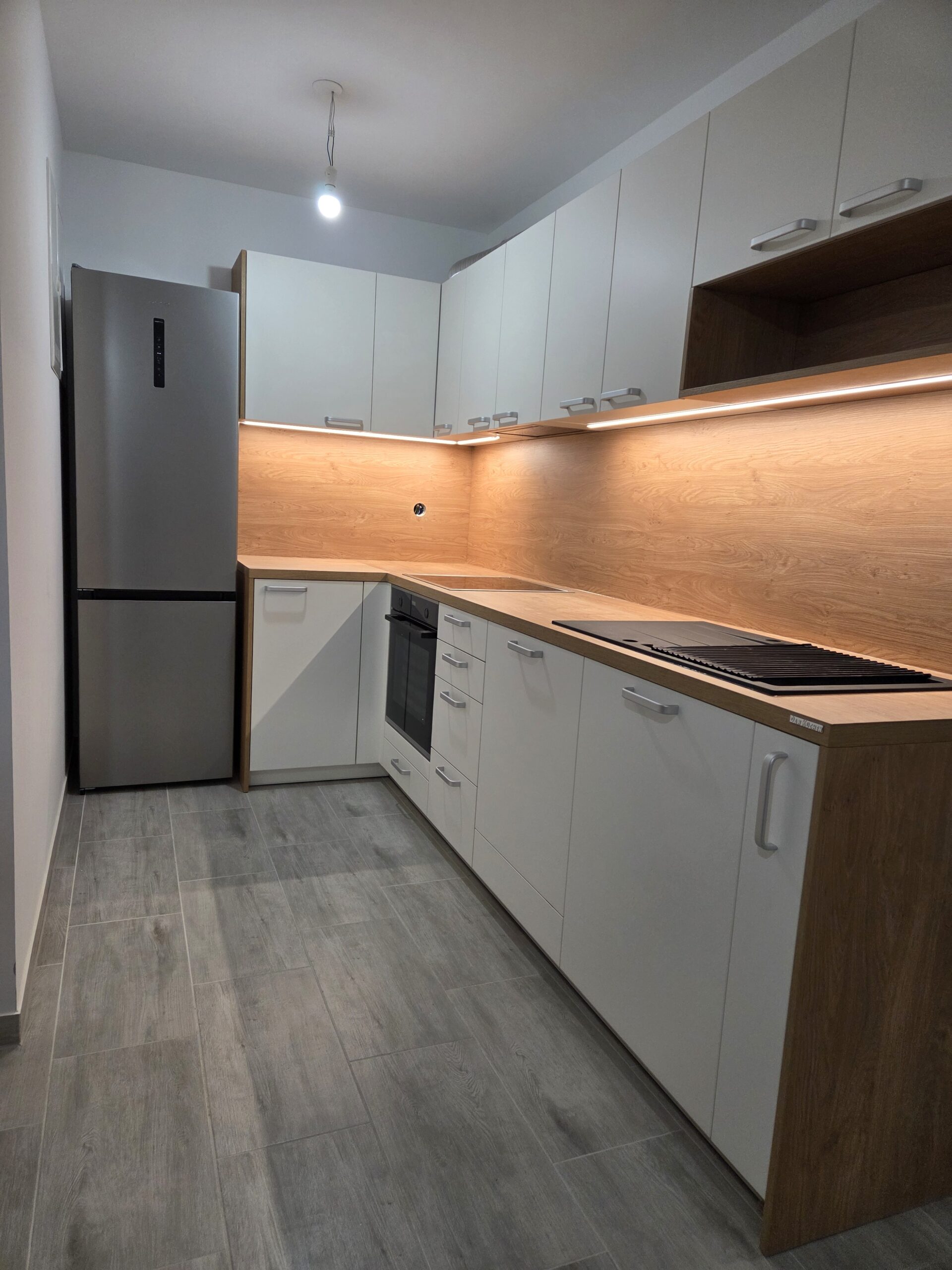 Lesene fronte in detajli so v odtenku Burguesa, klasične fronte pa so v beli mat barvi Polarweiß.